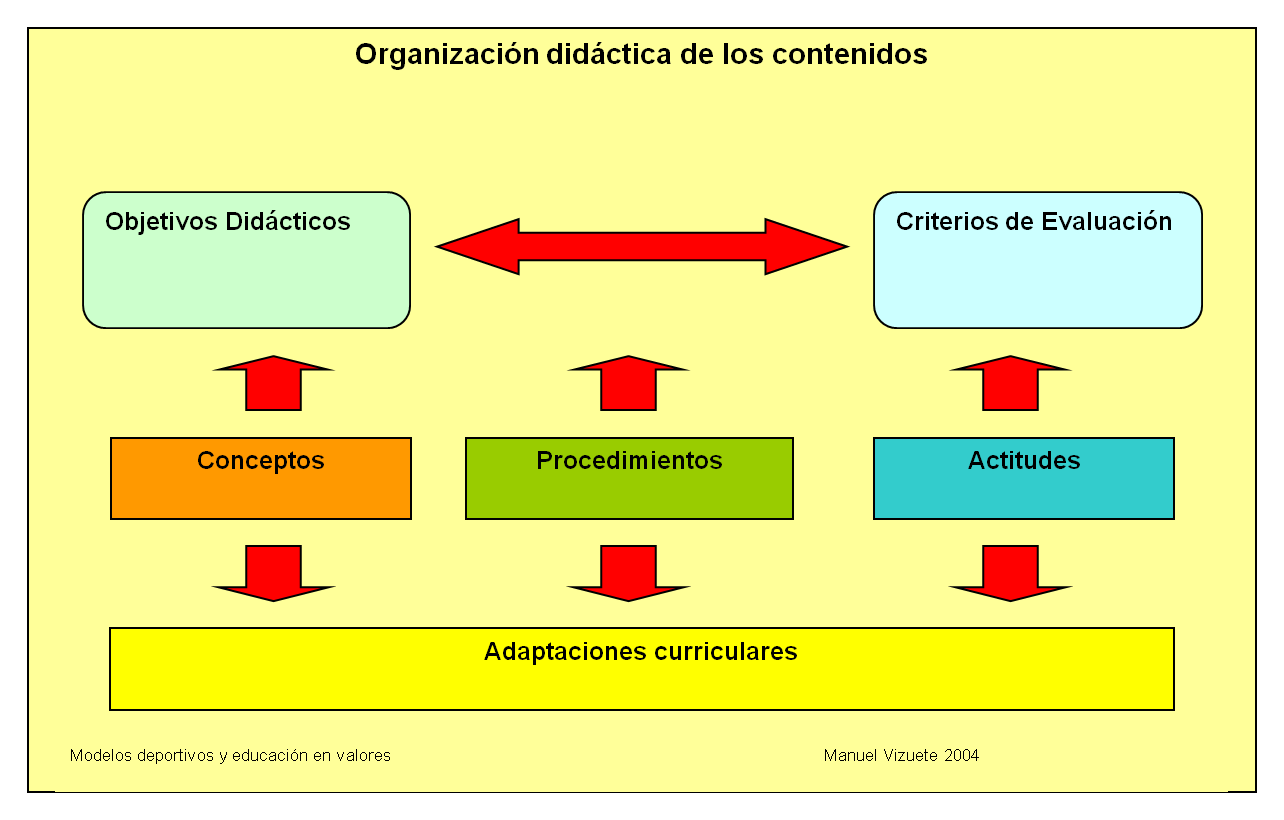 En esta acción vamos a someter a cada uno de estos modelos al esquema de organización educativa y de tratamiento de los contenidos establecidos en la vigente legislación española, de acuerdo con el diagrama siguiente: