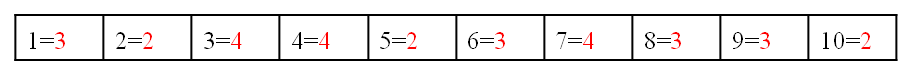 | 1=6 | 2=8 | 3=4 | 4=2 | 5=2 | 6=8 | 7=5 | 8=9 | 9=4 | 10=4 | 11=4 |