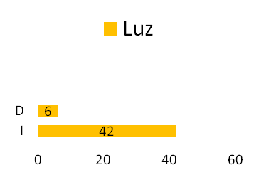 Luz (58 cuadros de 60) En 6 casos el foco de luz proviene de la derecha (10%) y en 52 de la izquierda (90%).
