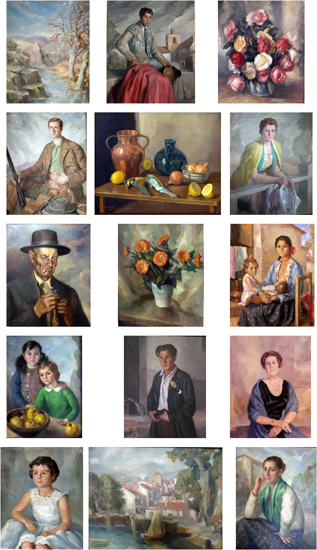De 414 piezas encontradas, a partir de fotografías del pintor, otras facilitadas por propietarios y clientes y las realizadas a los cuadros donde se encontraban ubicados, se han analizado 308 de la siguiente manera: