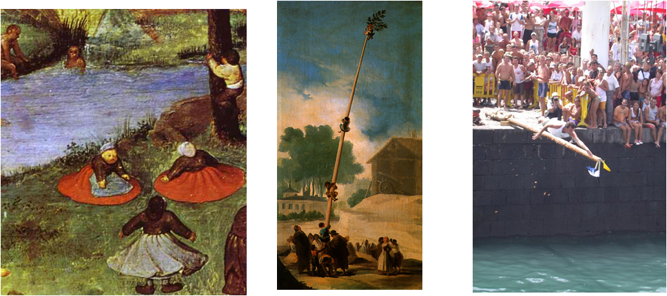 La dimensión de los juegos, es probablemente uno de los primeros factores de globalización, ya que es posible constatar la presencia del mismo juego en diferentes culturas y momentos históricos, y en lugares enormemente alejados unos de otros; tomemos como ejemplo, dos juegos que han llegado a nuestros días con escasas variables y que fueron tratado en las obras de los grandes maestros de la pintura, el columpio y la cucaña.